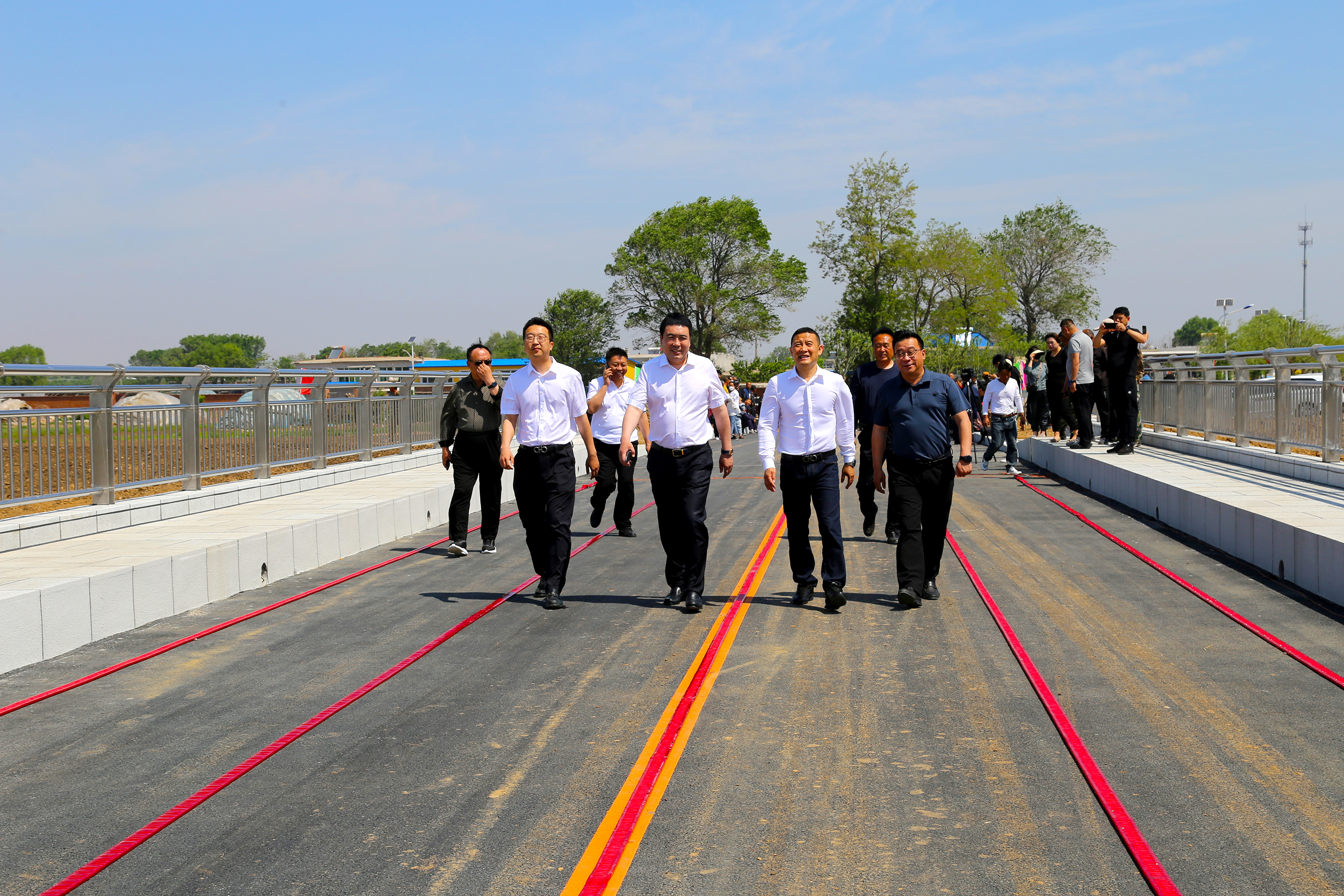 放心橋工程,牽動(dòng)著鄉(xiāng)村百姓的心,村民們每天去施工現(xiàn)場(chǎng),盼望著早日開通;牽動(dòng)著市、鄉(xiāng)領(lǐng)導(dǎo)的心,市委書記親自現(xiàn)場(chǎng)調(diào)研,期盼早日解決百姓之急,也牽動(dòng)著薄曉放董事長(zhǎng)的心,他多次現(xiàn)場(chǎng)拉練檢查,確保每個(gè)環(huán)節(jié)精益求精,既修建大橋,疏通道路,提供便利;又治理河道,加固堤防,保障安全;并在村內(nèi)沿路綠植7余種樹共計(jì)500多株,4余種花共計(jì)37000多株,美化家鄉(xiāng)環(huán)境。